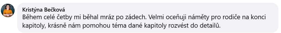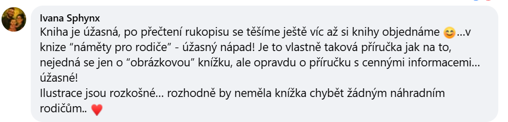 Ráda bych ještě doplnila, že spousta srdíčkovych rodičů (zejména maminek) nemá od začátku ten wow pocit a mateřská láska okamžitě nezahoří. Pro ty možná bude těžké pracovat s náměty pro rodiče. Jinak se těším, že kniha vyjde i v české verzi.