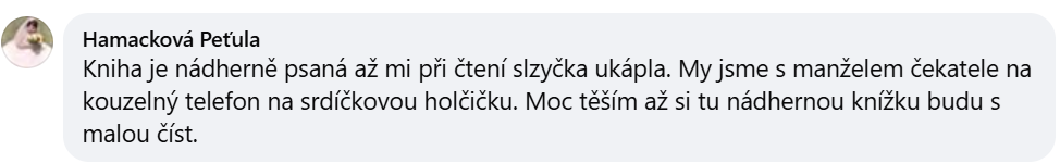 Při čtení příběhu jsem celou dobu brečela, protože mě to úplně vtáhlo a pohltilo (já často nebrečívám, takže je to opravdu působivé). Ráda si knížku koupím a budu číst s dcerou, bude-li k prodeji.